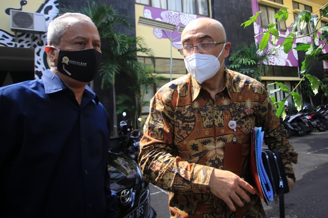 Kepala Badan Kepegawaian Negara (BKN) Bima Haria Wibisana berjalan untuk menjalani pemeriksaan di Komisi Nasional untuk Hak Asasi Manusia (Komnas HAM) di Jakarta, Selasa (22/6/2021). Bima Haria Wibisana yang hadir melalui pintu belakang untuk menjalani pe