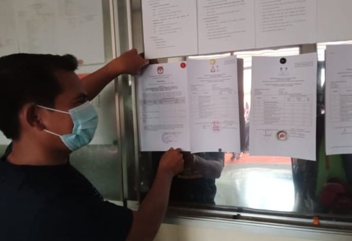 ILUSTRASI. Komisioner KPU Jember Achmad Susanto memasang laporan sumbangan dana kampanye di papan pengumuman Kantor KPU Jember, Senin (2/11).
