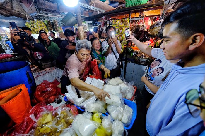 Gibran melakukan blusukan dengan berbelanja dan berdiskusi terkait isu ekonomi dengan para pedagang. Ibu Sri, salah satu pedagang cabai yang terlihat sumringah akhirnya bertemu dengan putra sulung presiden Jokowi tersebut. Apalagi dagangannya dibeli Gibran.