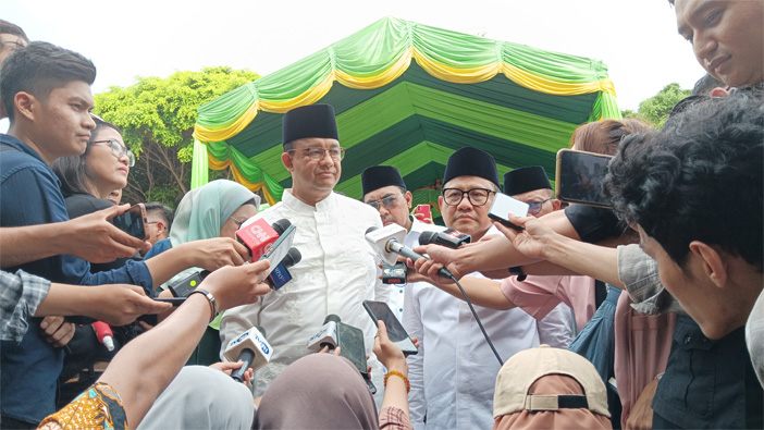 "Ada yang belimbing sayur bilang, bukan," kata Anies sambil cengengesan, Kamis (28/12).