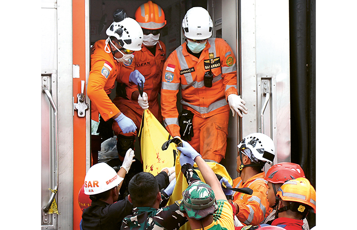 RENGGUT NYAWA: Korban meninggal akibat tabrakan KA Bandung Raya dan KA Turangga dibawa keluar dari salah satu gerbong KA Bandung Raya, Jumat (5/1).