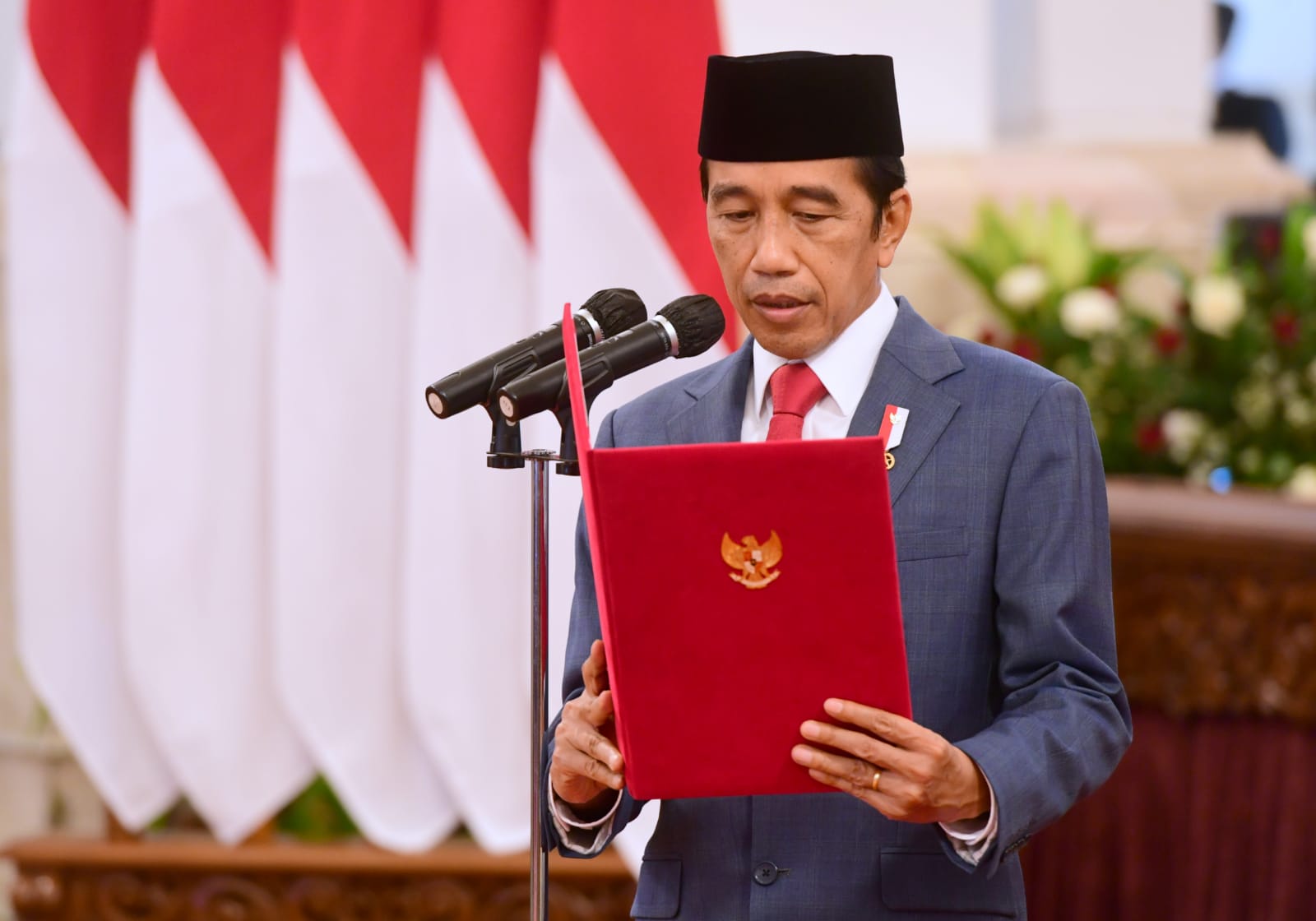 Presiden Jokowi saat melantik Panglima TNI Jenderal Andika Perkasa di Istana Negara, Jakarta, Rabu (17/11). (SETPRES)