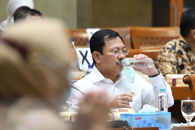 Menteri Kesehatan Terawan Agus Putranto saat mengelar rapat dengan Komisi IX DPR RI di kompleks Parlemen, Senayan, Jakarta pada Selasa (24/11/2020). Rapat tersebut membahas penjelasan perbaikan sistem Jaminan Kesehatan Nasional (JKN) dan evaluasi klaim ru
