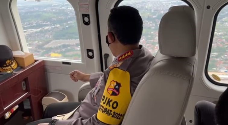 tangkapan layar-Kapolri Jenderal Pol. Listyo Sigit Prabowo meninjau kondisi arus mudik di jalur Jakarta arah timur menggunakan helikopter, Jumat (29/4/2022). (ANTARA/Laily Rahmawaty)