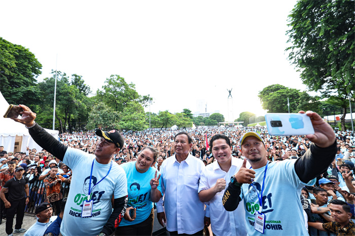 Capres nomor urut 2, Prabowo Subianto berselfi dengan ribuan ojol yang tergabung dalam dalam