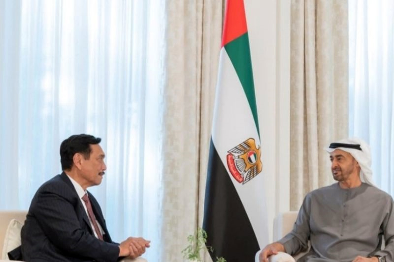 Menko Kemaritiman dan Investasi Luhut Binsar Pandjaitan saat bertemu dengan Presiden Uni Emirat Arab Mohammad bin Zayed (MBZ). (ANTARA)
