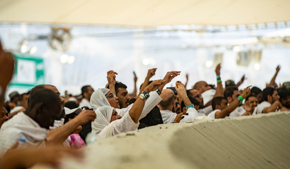 Ilistrasi Jemaah haji melaksanakan ritual melempar jumrah di Jamarat, Mina. (AFP)
