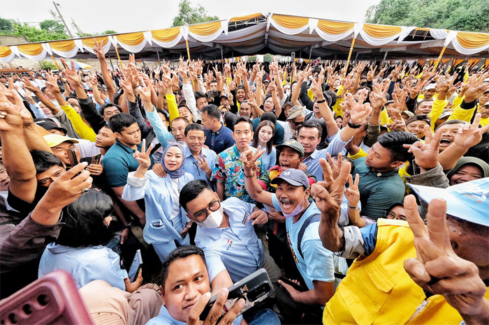 JawaPos.com - Cawapres nomor urut 2, Gibran Rakabuming Raka melanjutkan kampanye di Wonogiri dengan menemui masyarakat yang berkumpul di Desa Ngadirejo Kidul. Warga yang hadir di titik ketiga dalam kampanye di Wonogiri ini semakin banyak, diperkirakan mencapai seribuan.