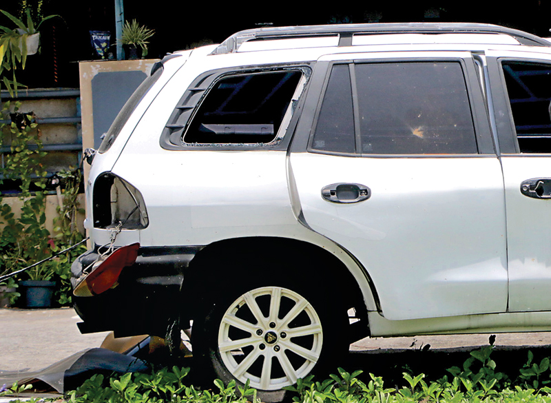 KACA PECAH: Mobil yang terdampak ledakan di Asrama Polisi Sukoharjo. (JAWA POS RADAR SOLO)