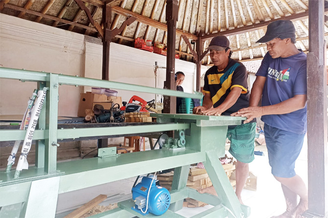 “Dulu untuk memotong papan kayu ini, saya perlu meminta bantuan teman. Kapan papan kayu tadi jadi, tergantung teman saya tadi. Pekerjaan saya tidak bisa cepat. Sudah begitu saya juga harus bayar ongkos. Nah dengan mesin ini, saya bisa cepat pekerja dan tidak keluar ongkos,” kata Dedi saat ditemui di saat ditemui di rumahnya di Desa Bungbungan, Kecamatan Banjarangkan, Kabupaten Klungkung (17/12).
