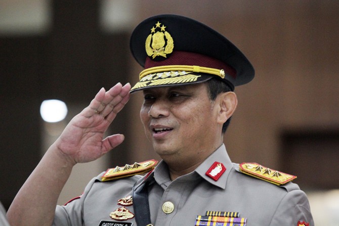 Wakapolri Komjen Pol Gatot Eddy Pramono usai Serah Terima Jabatan di gedung Bareskrim, Mabes Polri Jakarta, Selasa (7/1/2020). Kapolri Jenderal Polisi Idham Azis melantik Komjen Pol Gatot Eddy Pramono sebagai Wakapolri menggantikan Komjen Pol Ari Dono Suk