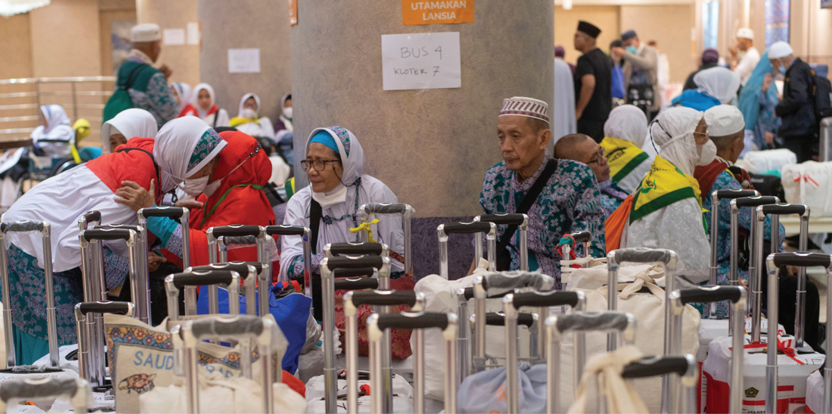 MENUNGGU JEMPUTAN: Jemaah haji asal embarkasi Jakarta Pondok Gede bersiap berangkat ke Bandara King Abdul Aziz dari Hotel Burj Al Wahdah Al Mumtayiz di Makkah pukul 16.30 waktu Arab Saudi, Rabu (5/7).