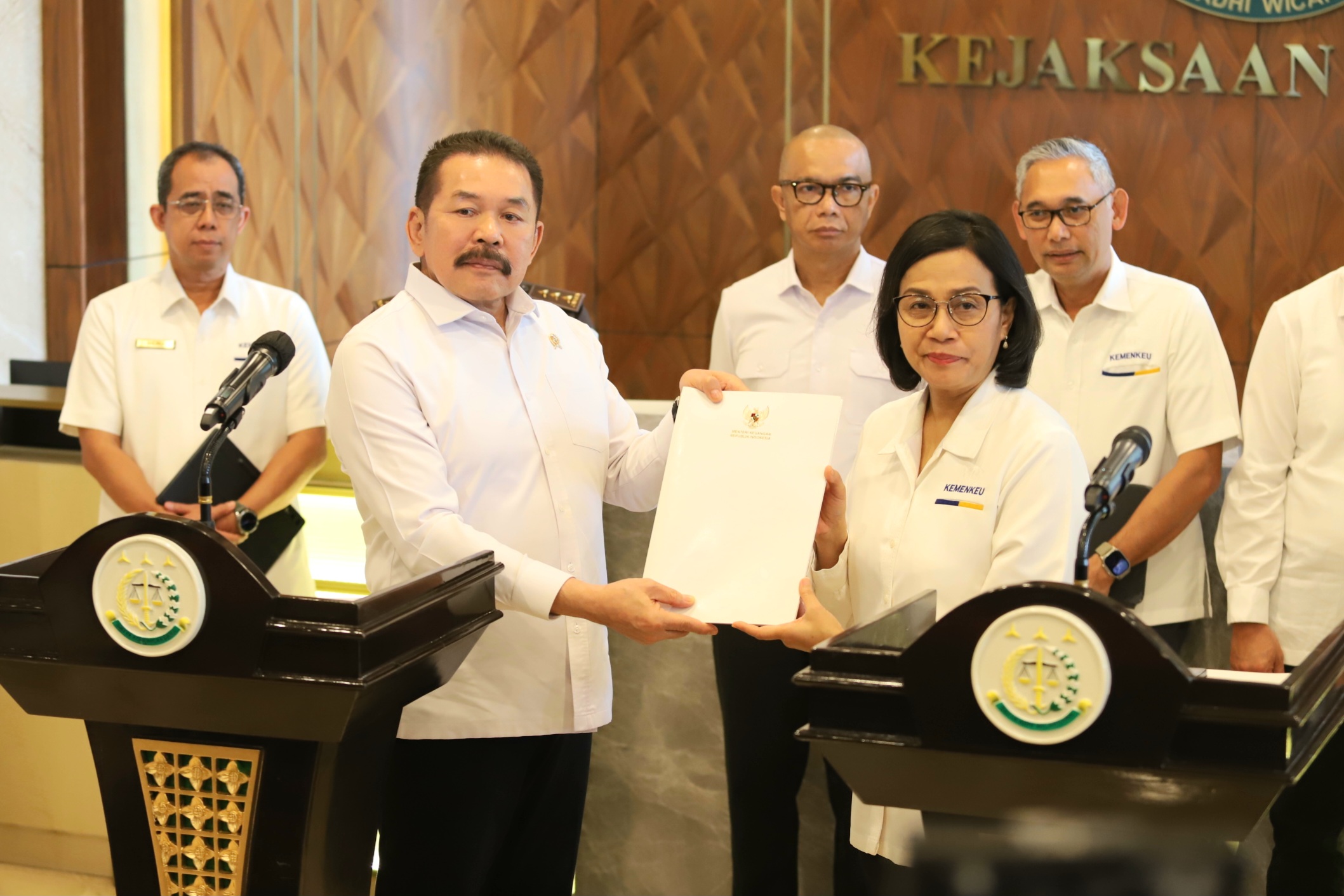 Menteri Keuangan Sri Mulyani menemui Jaksa Agung ST Buharnuddin untuk membahas dugaan korupsi di LPEI di Kejaksaan Agung.