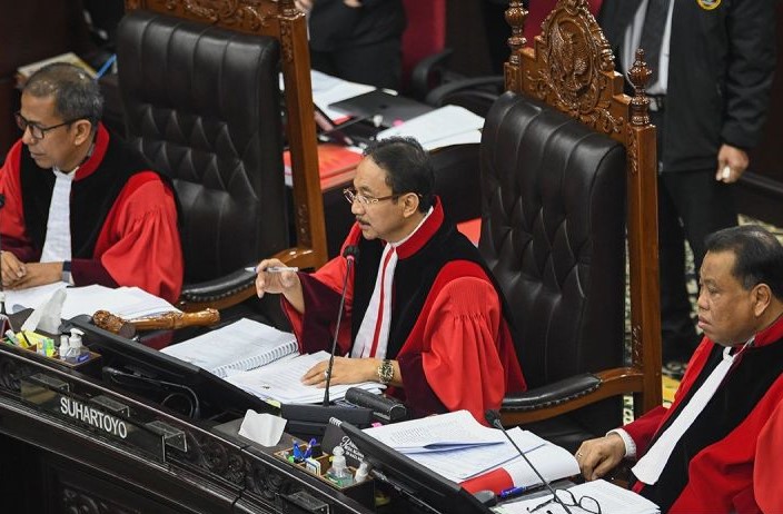Ilustrasi Ketua Mahkamah Konstitusi Suhartoyo saat memimpin sidang lanjutan sengketa hasil Pilpres 2024.
