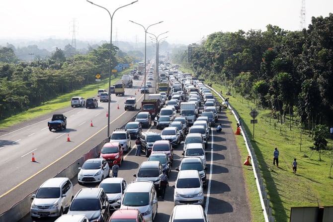 ILUSTRASI: Antrean kendaraan saat hendak keluar tol Jagorawi menuju jalur Puncak di Bogor, Jawa Barat, Sabtu (22/8/2020). Sebelumnya jalur menuju kawasan Puncak, Kabupaten Bogor, Jawa Barat.