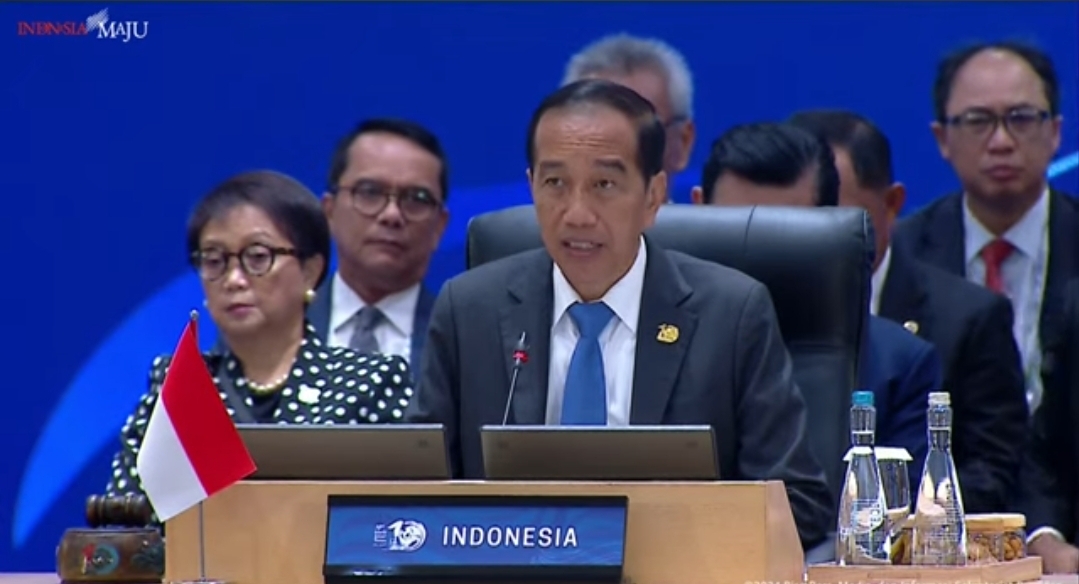 Presiden Joko Widodo (Jokowi) menyampaikan pidato dalam acara Konferensi Tingkat Tinggi (KTT) World Water Forum (WWF) ke-10 di Bali, pada Senin (20/5). (Foto: Youtube Setpres)