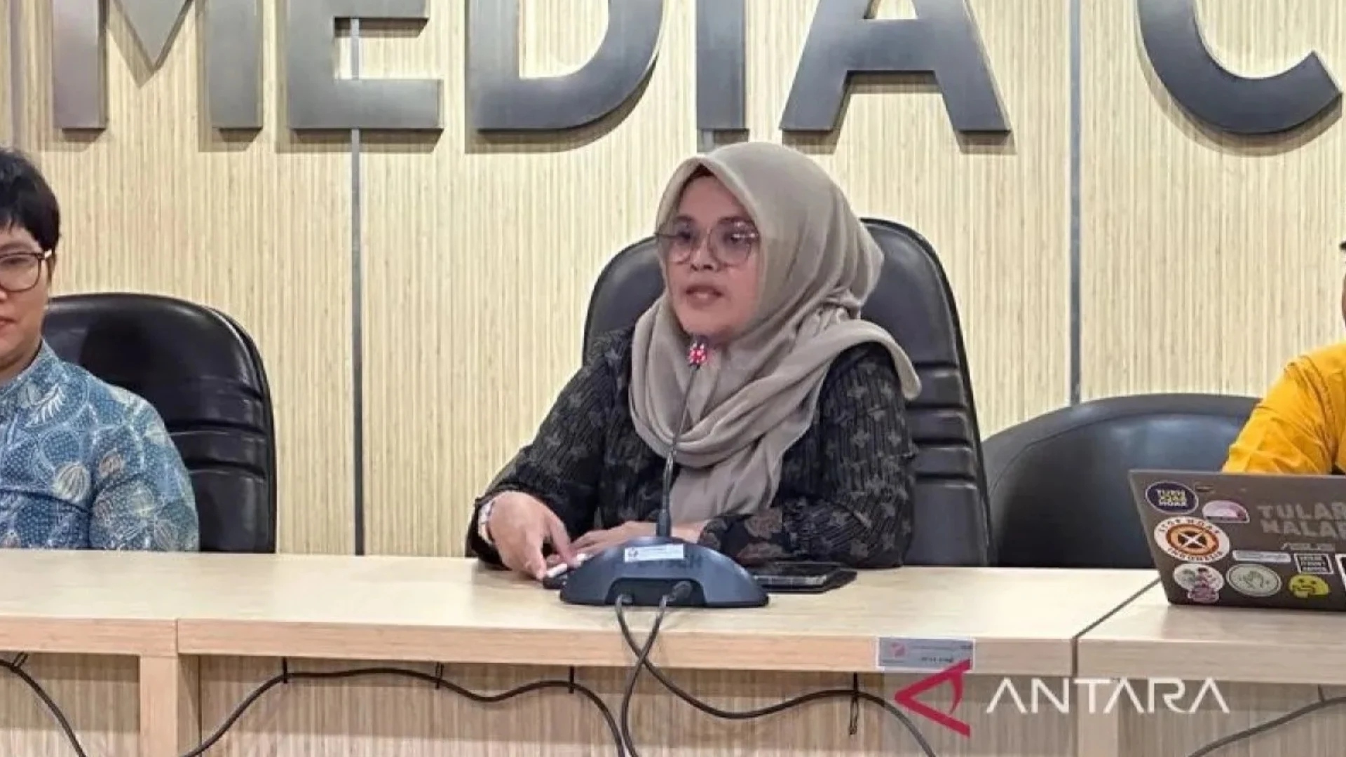 Anggota Bawaslu RI, Lolly Suhenty, memberikan keterangan di Gedung Bawaslu RI, Jakarta, pada Senin (12/2/2024). (ANTARA/Rio Feisal/aa)