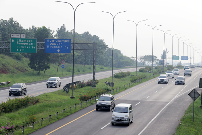ILUSTRASI: Sejumlah kendaraan melintas di ruas Jalan Tol Jakarta-Cikampek, Karawang, Jawa Barat. Polri menerapkan kebijakan jalur satu arah atau