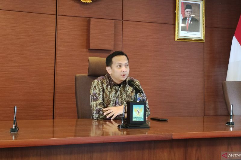 Deputi Bidang Koordinasi Investasi dan Pertambangan Kemenko Marves Septian Hario Seto dalam konferensi pers di Jakarta, Kamis (6/4/2023). (ANTARA/Ade Irma Junida)