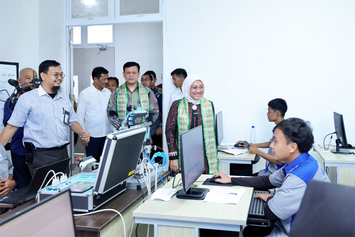 Menaker Ida Fauziyah mengunjungi Satuan Pelaksana (Satpel) Pelatihan Vokasi dan Produktivitas Balai Latihan Kerja (BLK) di kawasan industri di Kota Batam, Kepulauan Riau.(Humas Kemnaker)