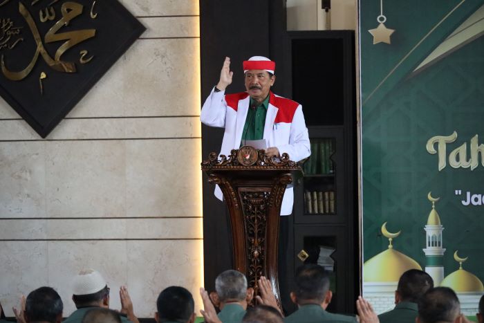 Letjen TNI Tandyo Budi Revita R menyampaikan pandangan mengenai peringatan Tahun Baru Islam 1446 H di Masjid At-Taqwa Kompleks Mabesad.