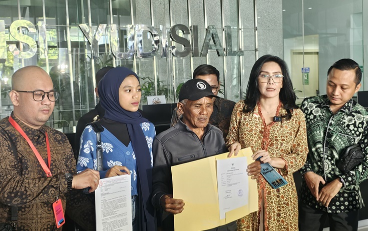 Anggota DPR RI Rieke Diah Pitaloka mendampingi keluarga korban dugaan pembunuhan Dini Sera Afrianti, saat melaporkan Tim Majelis Hakim Pengadilan Negeri Surabaya ke Komisi Yudisial (KY), Jakarta Pusat