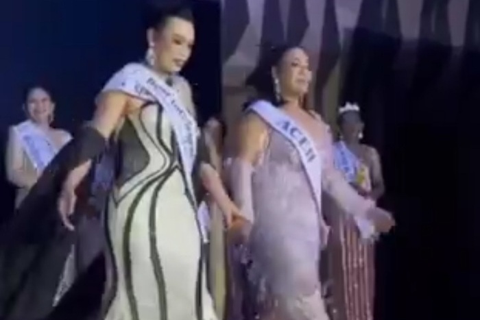 Viral sebuah video yang memperlihatkan adanya acara kontes kecantikan transgender. (X @HushWatchID)
