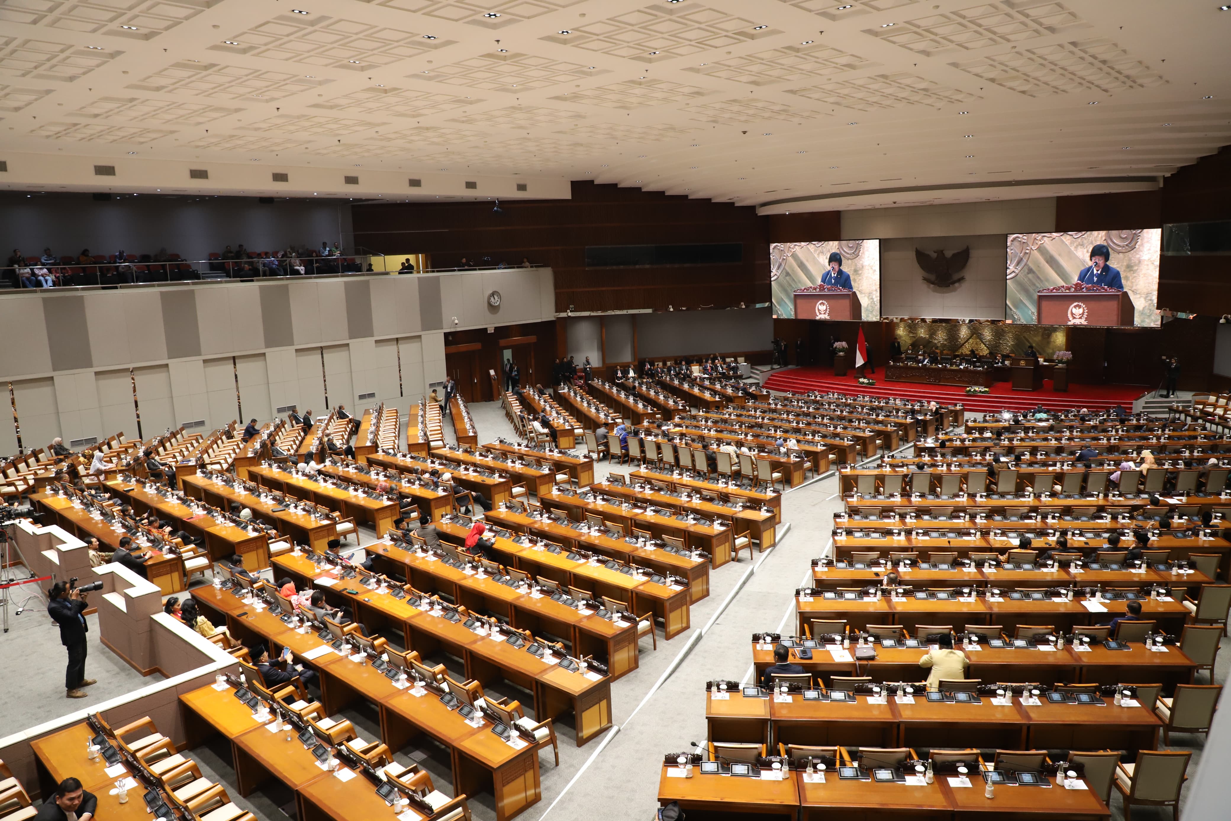 Rapat paripurna ke-21 Masa Persidangan V Tahun Sidang 2023-2024 di Gedung Nusantara II, kompleks Parlemen. Senayan, Selasa (9/7/2024). (DERY RIDWANSAH/JAWAPOS.COM)