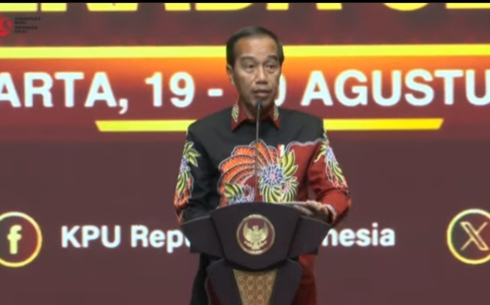 Presiden Jokowi saat memberikan pengarahan dalam rapat konsolidasi nasional kesiapan Pilkada 2024 di JCC, Senayan, Jakarta Pusat, Selasa (20/8).