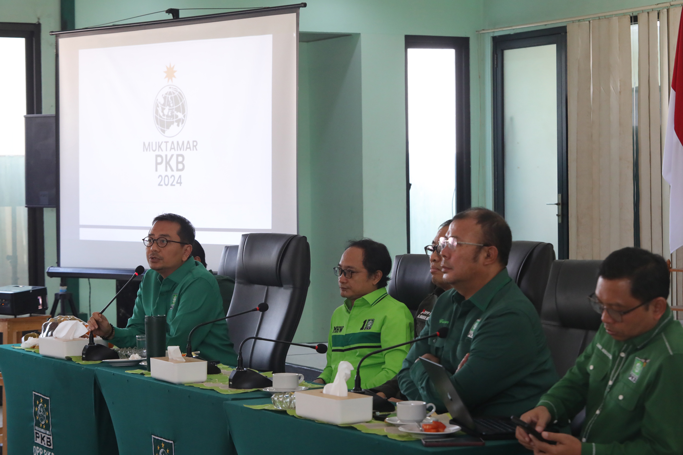 Dari kiri Sekretaris SC Syaiful Huda Sekjen PKB Hasanudin Wahid Ketua SC Faizol Riza Ketua OC Cucun Syamsul Rizal Sekretaris OC Zainul munasicin saat Rapat Panitia Muktamar PKB 2024 di Kantor DPP PKB, Jakarta, Selasa (13/8/2024). (Fedrik Tarigan/ Jawa Pos