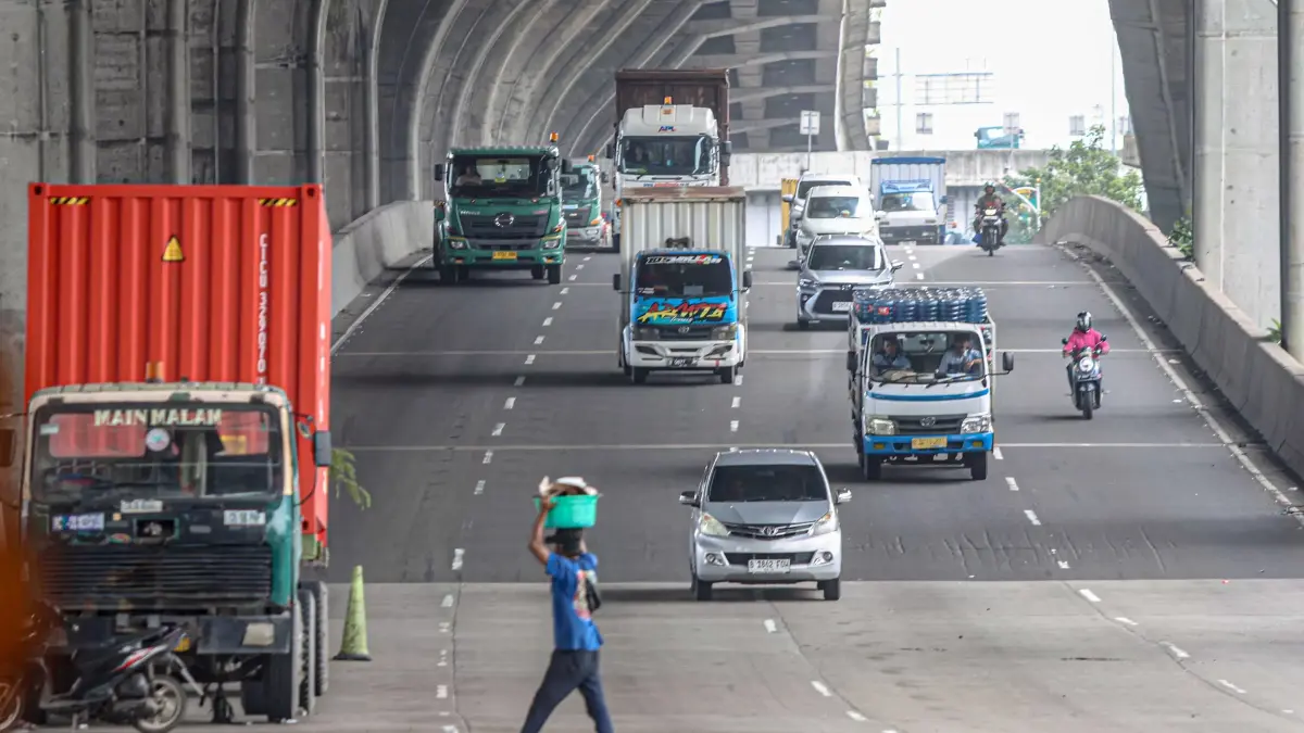 Massa buruh saat berunjuk rasa di depan gedung DPR/MPR, Kamis (22/8/2024). (ANTARA/Ilham Kausar)