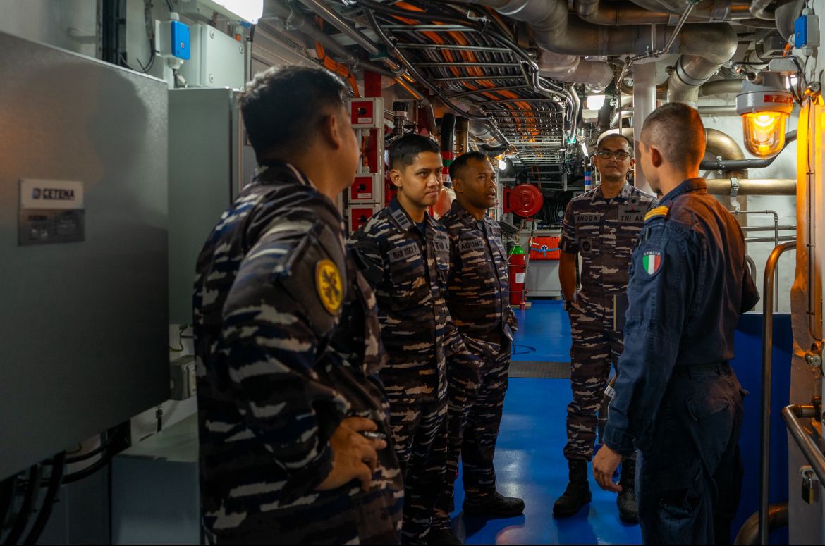 Lima prajurit TNI AL belajar langsung cara mengoperasikan kapal PPA buatan Italia. (TNI AL)