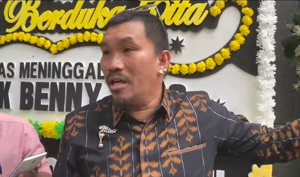 Komedian Ronny Imanuel alias Mongol Stres saat melayat ke rumah duka Benny Laos di Jakarta, Minggu (13/10). (Istimewa)