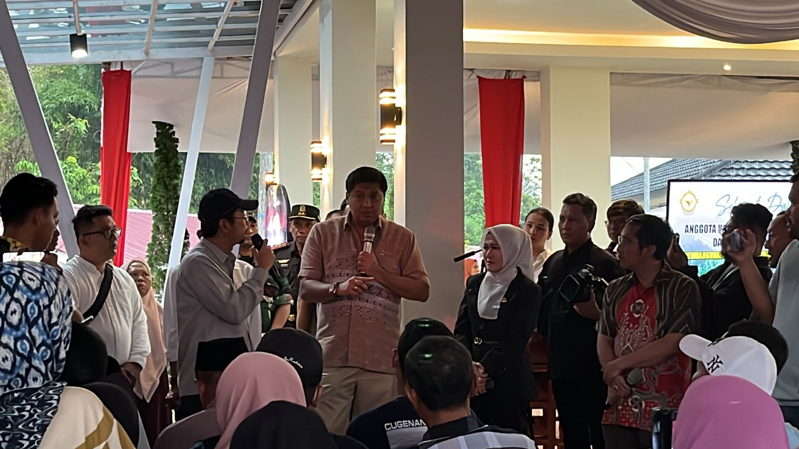 Menteri PKP Maruarar Sirait dalam kunjungannya di Huntap Tahap 3 Korban Gempa Cianjur di Kabupaten Cianjur, pada Kamis (21/11). (Nurul F/Jawapos.com)