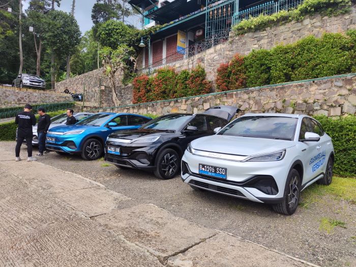 Mobil BYD Atto 3 diparkir di De Grote Cafe, Kabupaten Bandung dalam perjalanan test drive dari Jakarta
