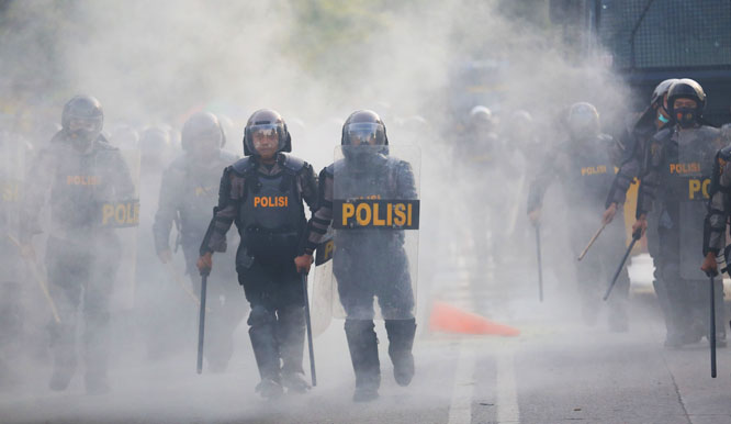 Unjuk Rasa Bentrok Demo lanjutan dari mahasiswa yang tergabung dari berbagai macam aliansi protes UU Cipta Kerja, di kantor wakil rakyat Kaltim kembali diwarnai bentrok antara polisi dan massa, Kamis (5/11). Massa yang mulai anarkis memaksa untuk masuk ke