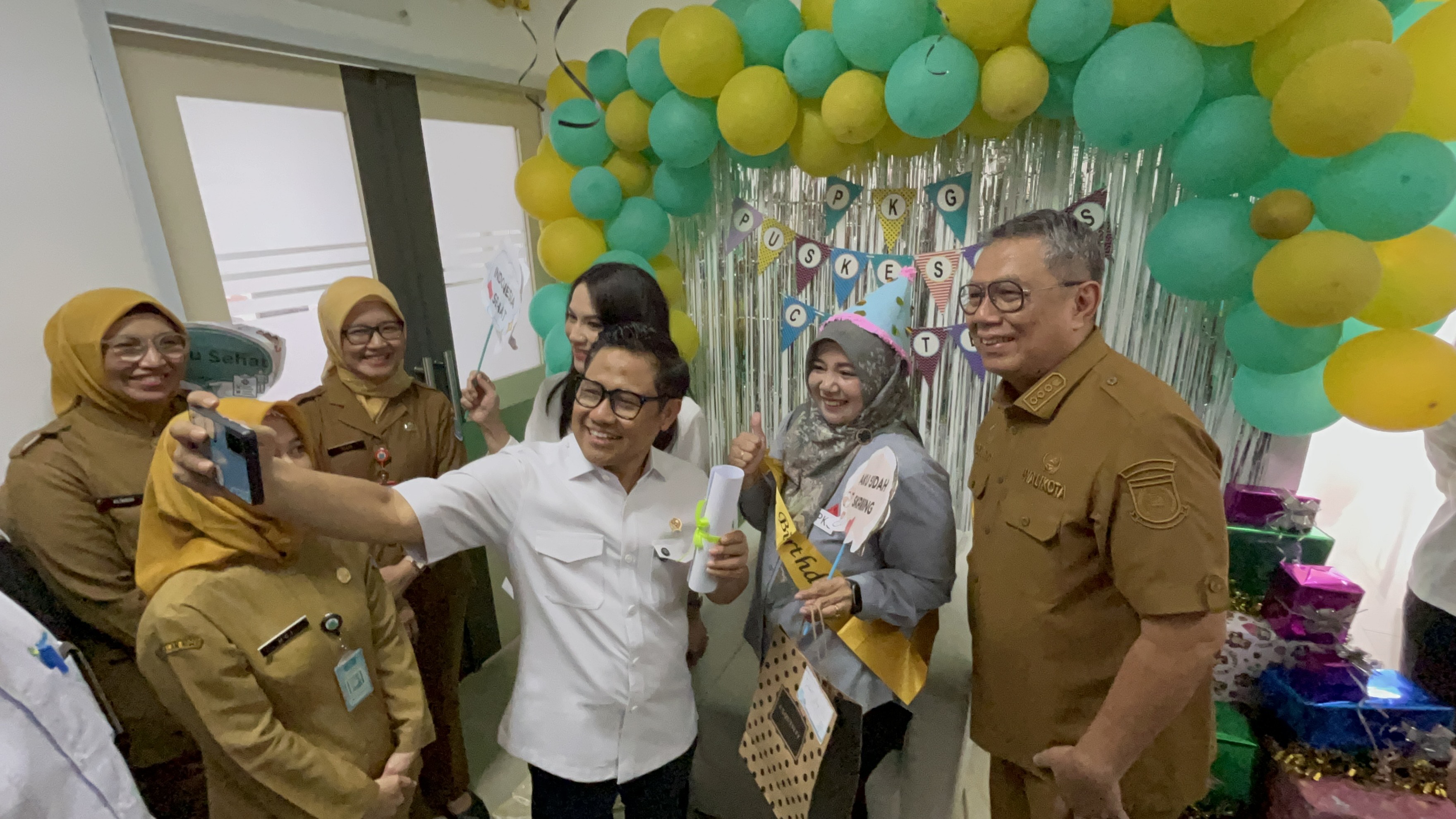 Menteri Koordinator Bidang Pemberdayaan Masyarakat (Menko PM) Muhaimin Iskandar (Cak Imin) saat meninjau program CKG di Puskesmas Ciater, Serpong, Tangerang Selatan. (mia/ Jawa Pos)