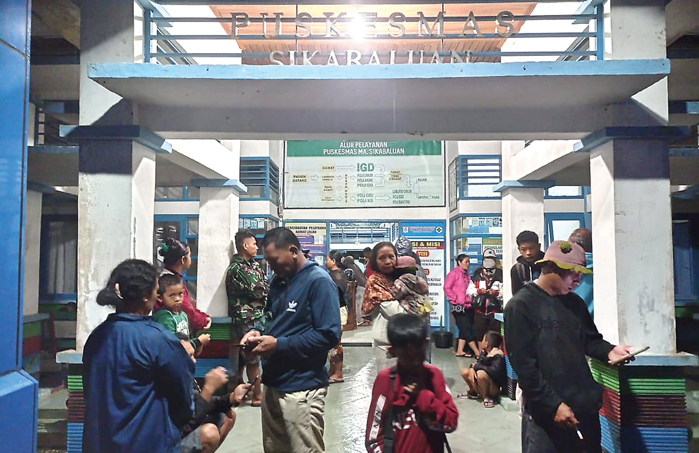 SELAMATKAN DIRI: Warga Desa Muara Sikabaluan, Siberut UTara, berlindung di puskesmas saat gempa mengguncang Kepulauan Mentawai, Senin (25/4).