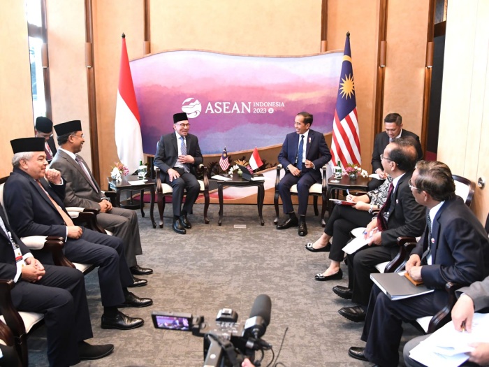 Presiden Joko Widodo dan Perdana Menteri (PM) Malaysia Anwar Ibrahim menggelar pertemuan bilateral di Hotel Meruorah, Labuan Bajo, Kabupaten Manggarai Barat, Provinsi Nusa Tenggara Timur (NTT).