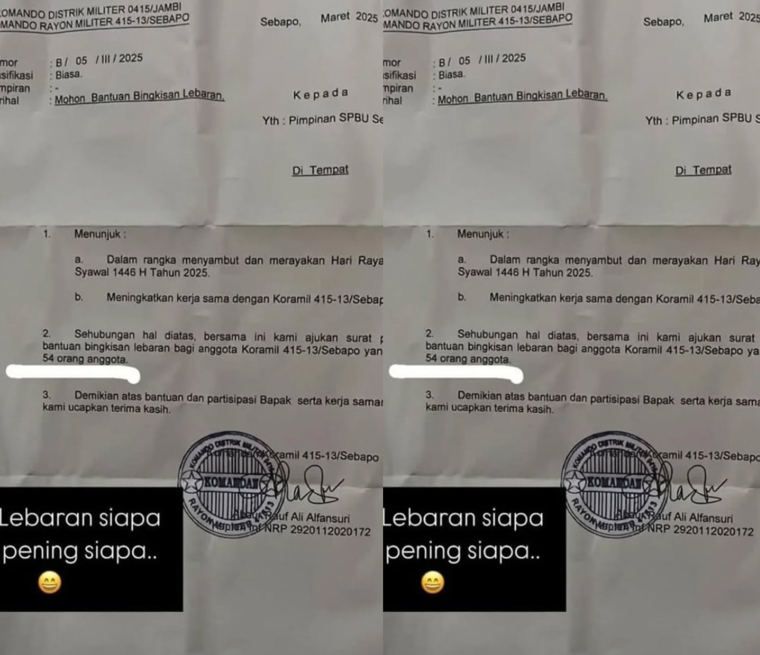 Tangkapan layar foto viral yang malak THR bukan cuma ormas dan LSM, tapi juga tentara. (Platform X)