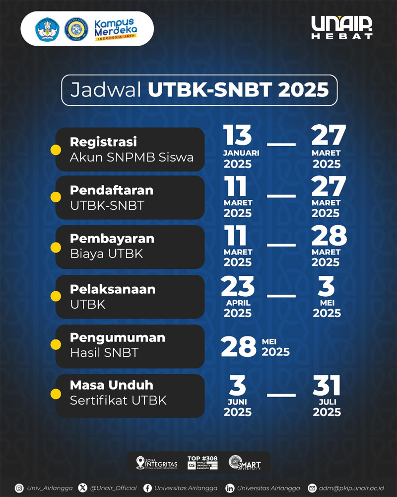 Untuk diketahui, UNAIR akan menggelar UTBK-SNBT di tiga lokasi, yaitu Kampus MERR-C, Kampus Dharmawangsa-B, dan Kampus Dharmahusada-A. Secara garis besar, tidak ada perbedaan yang signifikan soal tata tertib UTBK tahun ini dengan tahun sebelumnya. Namun, tahun ini, UNAIR tidak lagi menerapkan protokol kesehatan seperti di tahun-tahun sebelumnya saat angka penderita Covid-19 masih tinggi.
