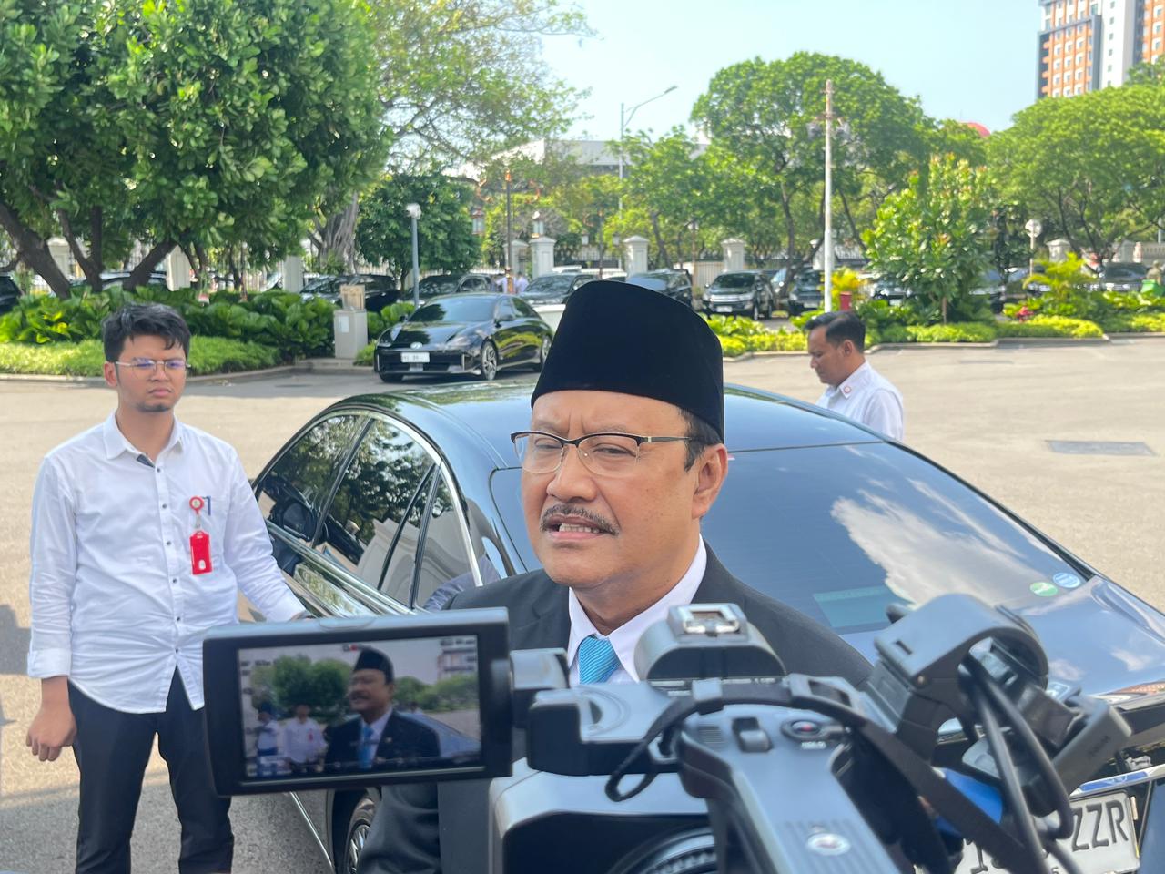Menteri Sosial Saifullah Yusuf menegaskan hubungan baik antara Presiden Prabowo Subianto dan Wakil Presiden Gibran Rakabuming Raka, menepis isu ketegangan di antara mereka. (Folly/Jawa Pos)