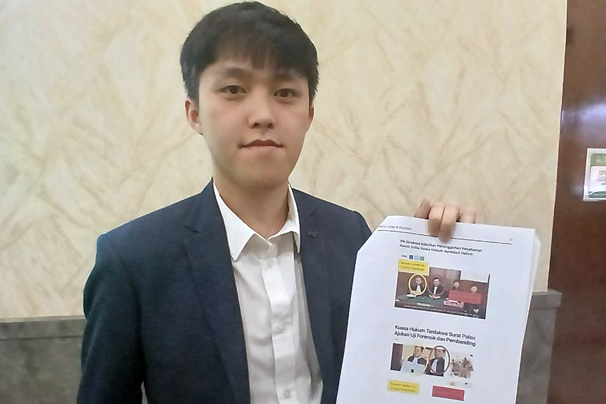 Kimham melampirkan bukti kedekatan calon pengurus dengan pengacara pemohon dalam materi jawaban, Kamis (24/7). (Lugas Wicaksono/Jawa Pos)