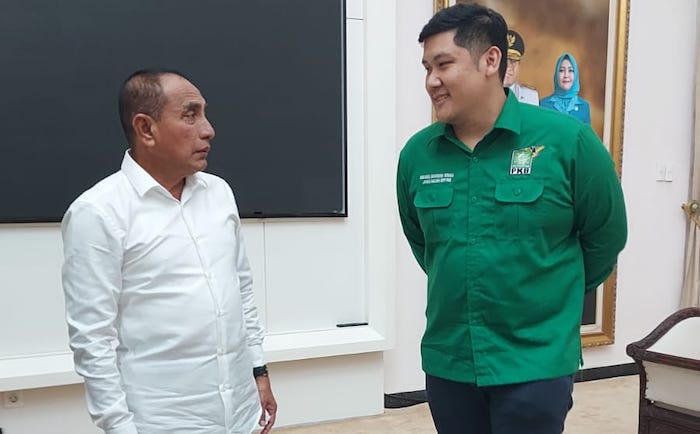 Juru Bicara Partai Kebangkitan Bangsa (PKB) Mikhael Sinaga saat menyambangi rumah dinas Gubernur Sumatera Utara, Edy Rahmayadi.