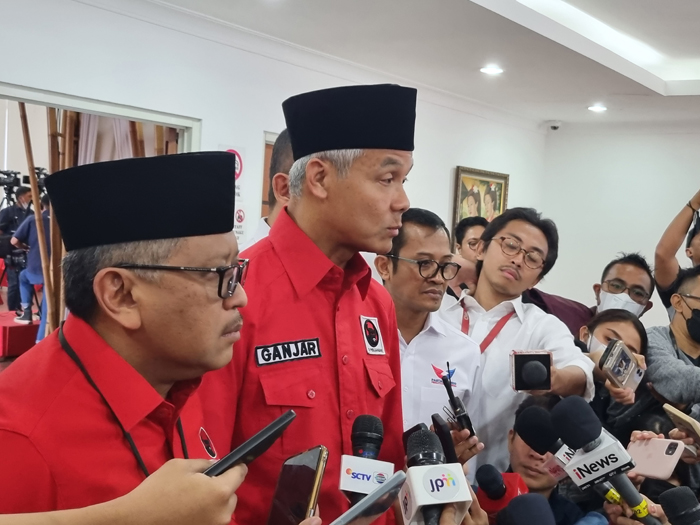Bakal capres Ganjar Pranowo di kantor DPP PDI Perjuangan, Menteng, Jakarta Pusat, Jumat (9/6).