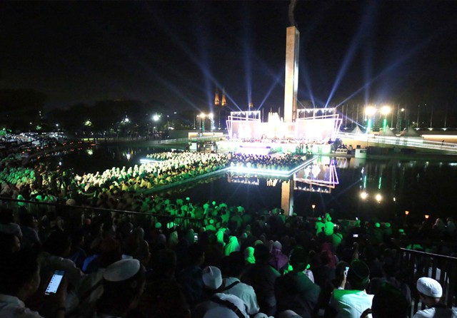 SYIAR DAN SYAIR: Malam puncak peringatan Hari Santri di Lapangan Banteng, Jakarta, Senin (21/10). (Fedrik Tarigan/Jawa Pos)