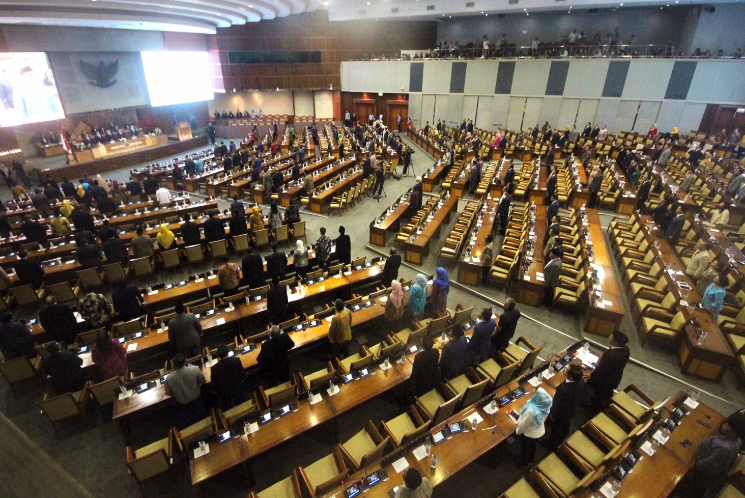 Suasana Rapat Paripurna DPR Akhir Masa Jabatan 2014-2019 di Gedung Nusantara I, Kompleks Parlemen, Senayan, Jakarta, Senin (30/9). Rapat Paripurna tersebut dengan Agenda Pidato Ketua DPR Penutupan Masa Persidangan Satu Sidang 2019 Dan Penutupan Masa Bakti