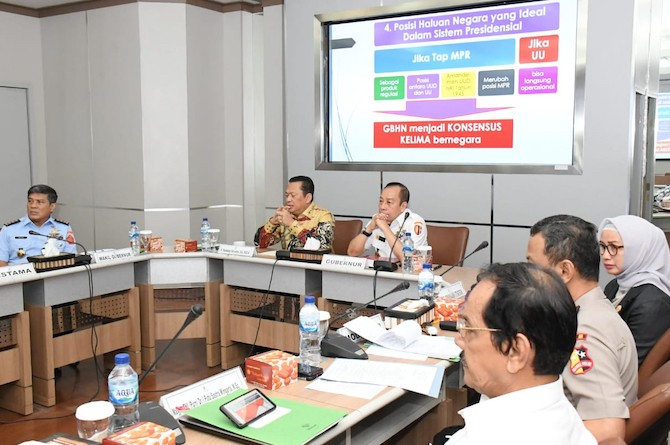 Sementara itu, mengenai polemik menghadirkan kembali GBHN, Bamsoet Menuturkan, berdasarkan rekomendasi MPR RI 2014-2019, nomenklatur yang digunakan adalah Pokok-Pokok Haluan Negara (PPHN), bukan GBHN.