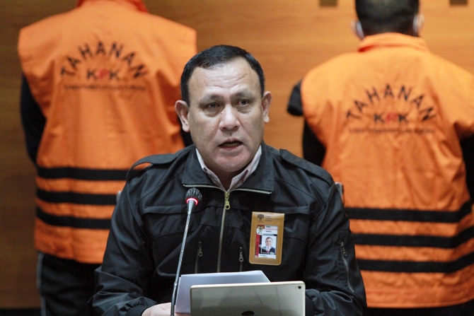 Ketua KPK Firli Bahuri saat jumpa pers Operasi Tangkap Tangan (OTT) Gubernur Sulawesi Selatan di gedung KPK, Jakarta, Minggu (28/2/2021) dini hari. KPK menetapkan tiga orang tersangka dalam OTT terkait kasus dugaan suap proyek infrastruktur di lingkungan