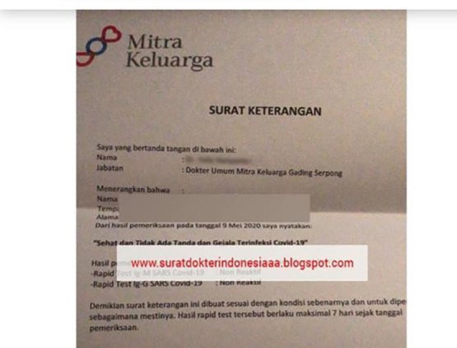 JawaPos.com - Viral sebuah unggahan yang memperjualbelikan surat bebas Covid-19 milik Rumah Sakit Mitra Keluarga. Surat tersebut dijual melalui sebuah toko online. Kabar ini pun dengan cepat viral setelah informasi ini ramai tersebar di media sosial.